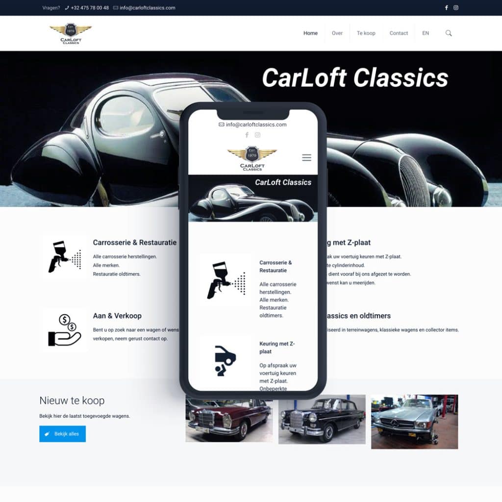 Dankzij de combinatie van een sterk logo en een heldere website beschikt CarLoft Classics over een solide basis om klanten aan te trekken en vertrouwen uit te stralen. De website vormt vandaag het eerste aanspreekpunt voor geïnteresseerden en zal met de geplande rebranding nog beter aansluiten bij de toekomstvisie van het bedrijf.