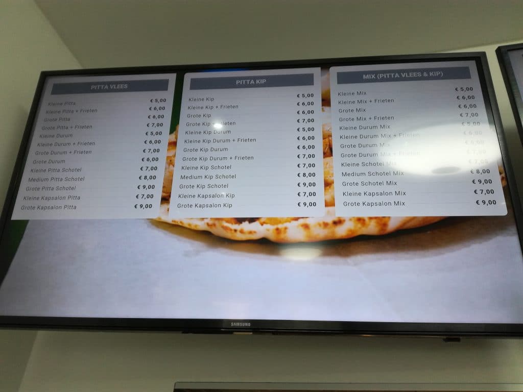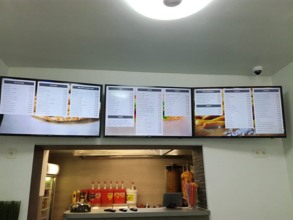 Ook in de zaak zelf werden digitale stappen gezet. We realiseerden een op maat gemaakte digitale menukaart, die zowel op infoschermen als via QR-codes op de toestellen van klanten kon worden geraadpleegd.